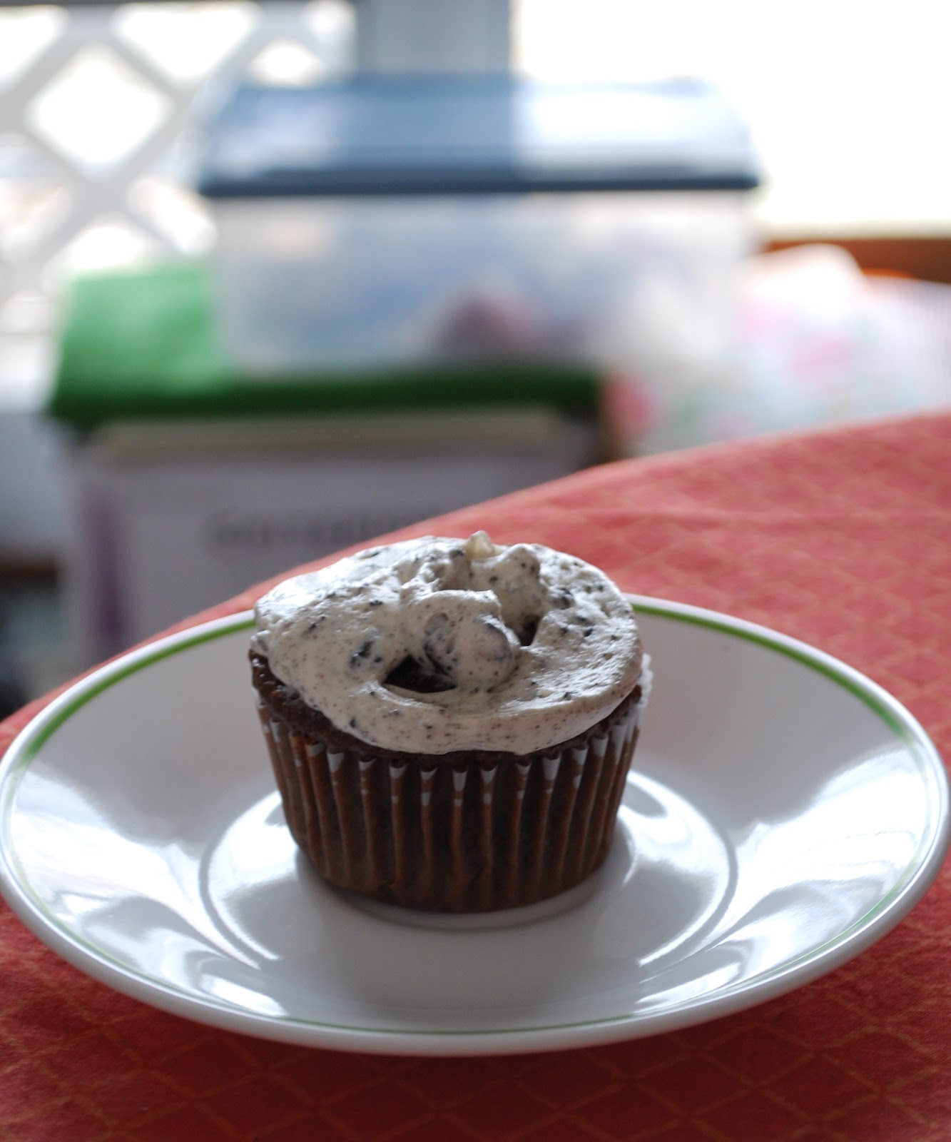This Saturday I took a chance on a new dessert recipe to take to a dinner at my sister-in-law's place. The choice? Death by Oreo Cupcakes from Decor and the Dog. I almost never buy Oreo cookies, partly because they go so fast around here, so I thought this was a chance worth taking.