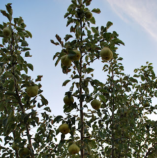 The pears aren't quite ready yet, but we're keeping an eye on them if we're to save them from the birds.