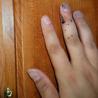I didn't want to spend any money on this project, so I used the paint we had left from other projects - a flat black, and a clear gloss finish. My gloss coat is a little less even than I would have liked, but that was completely user error. I was never very good at spray painting, and taking two years off (minus that one job for a stage prop last year) has not increased my skills.