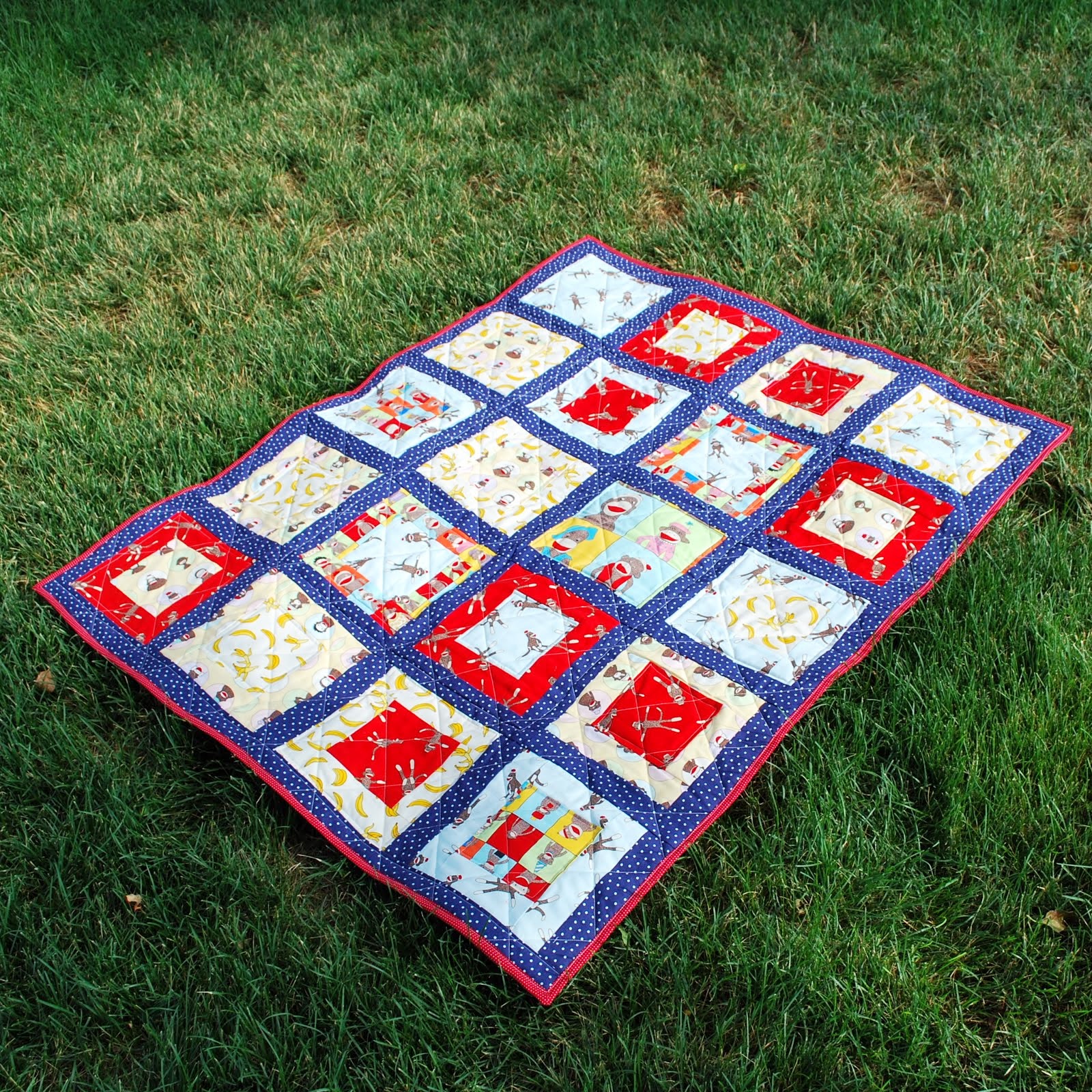 I think the binding looks pretty good against the top. Not a perfect match to the other reds, but close - and I think the little dots work well against the dots in the navy. So while it isn't perfect, I think it does a good job of tying the whole thing together.
