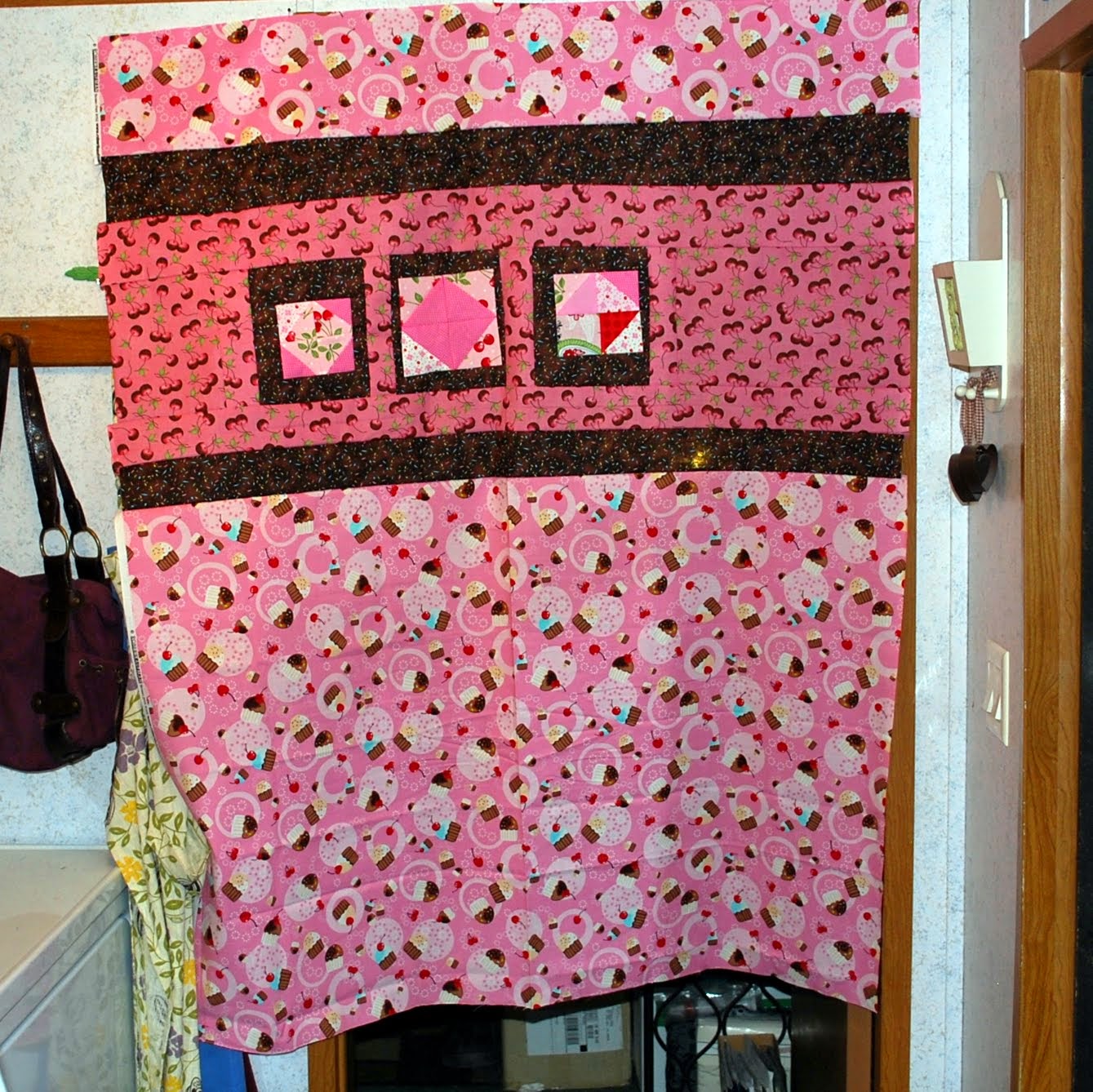 On a happier note - how cute is the chocolate covered cherry fabric! I know the pink in it doesn't quite coordinate with my other pinks, but once I saw it I knew I had to include it somehow.