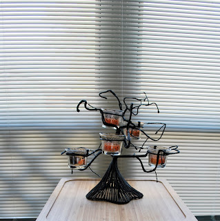 A clearance find last year that I've been waiting all year to use. Filled with tea lights someone gave me. I think the scent is Halloween Night or something like that.