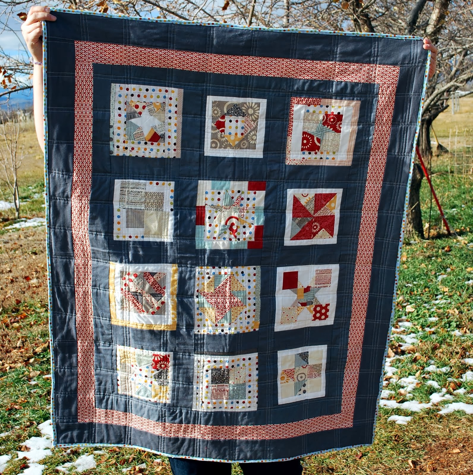 I've got a few loose ends to trim before I throw it in the wash - and I'm still seeing if it has a chance of going to a home right away or if it'll become home decor. I have to say, I didn't intend to give it away, but ever since I picked up feelers on this possible home I've been feeling like that's where it was meant to be. Spending the last several months of backing and quilting thinking of it as going away has really helped me be ready to part with the top blocks (even though I love them and kind of want to keep them as proof that I can do complicated blocks). So, either way, I think I'll feel like I win.