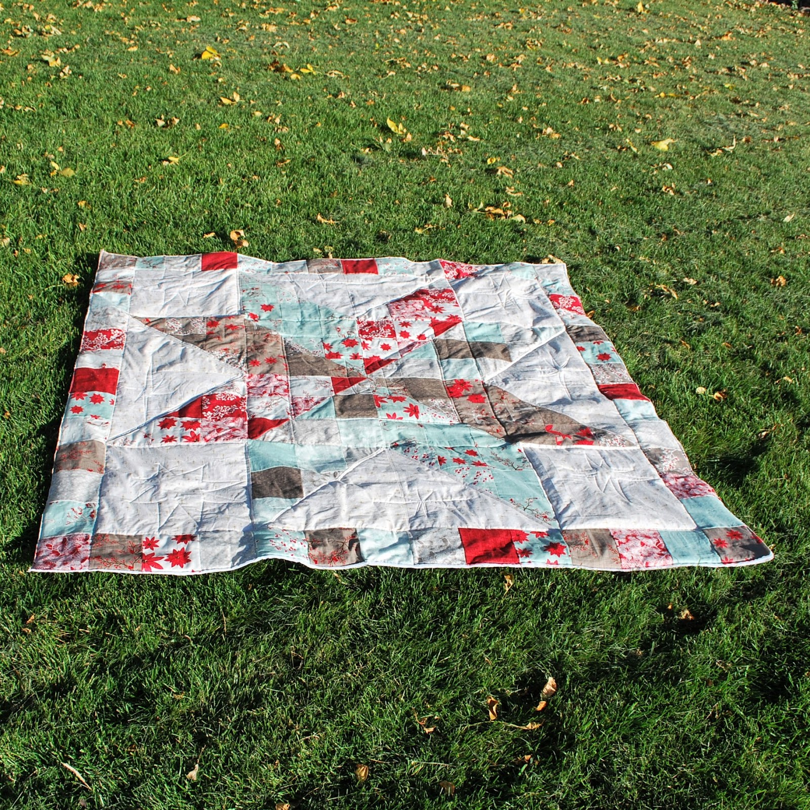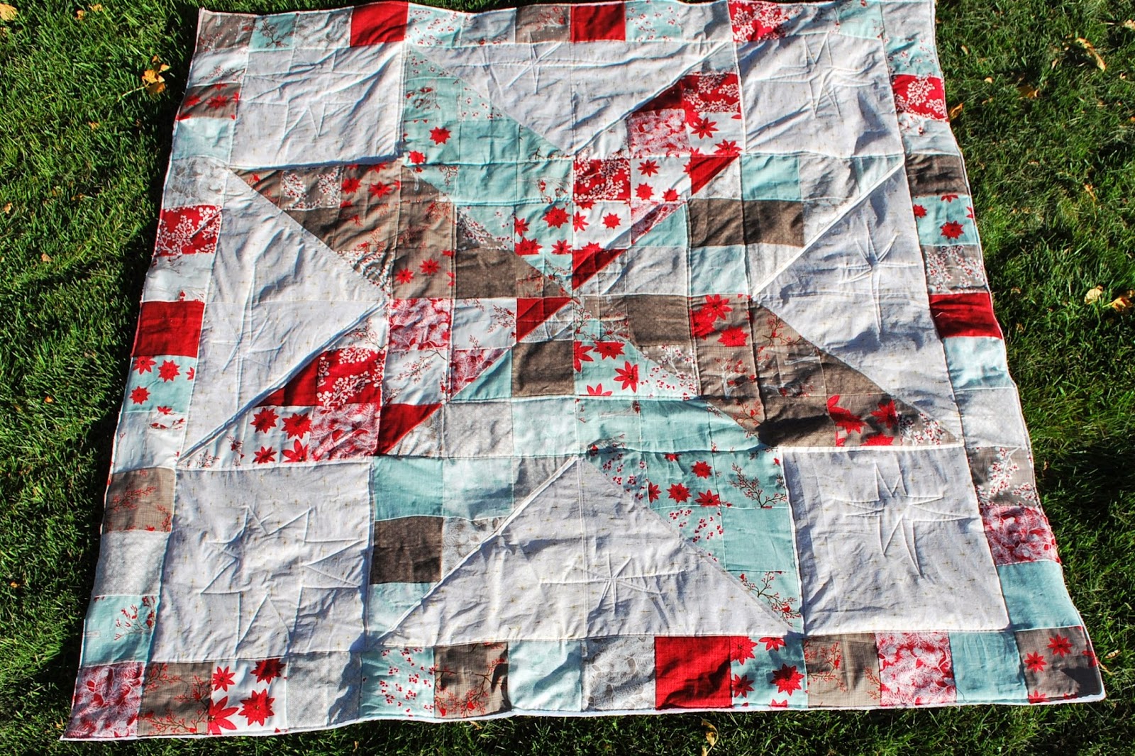 I think I'm happy with it, though I do wish a couple of the worst spots had quilted a little more easily (you can see a pucker in the lower right corner, where the background square meets the dark brown triangle point). I do think they'll be better after washing, but if not, maybe I can selectively unpick and do a little bit of fixing there.