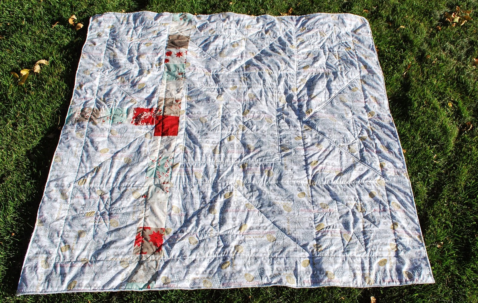 The quilting is even harder to take a photo of on the back side, but when you can see it, it looks great! I'm actually more excited about the turnout than I thought I would be. I'd intended to go heavy on the quilting, stopped thanks to all the issues I was having -- and I think it was the right breaking point.