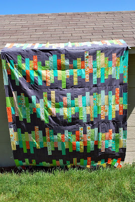 - Scrappy leftover jelly roll border -- make a large stripe out of 6 smaller stripes (per side)