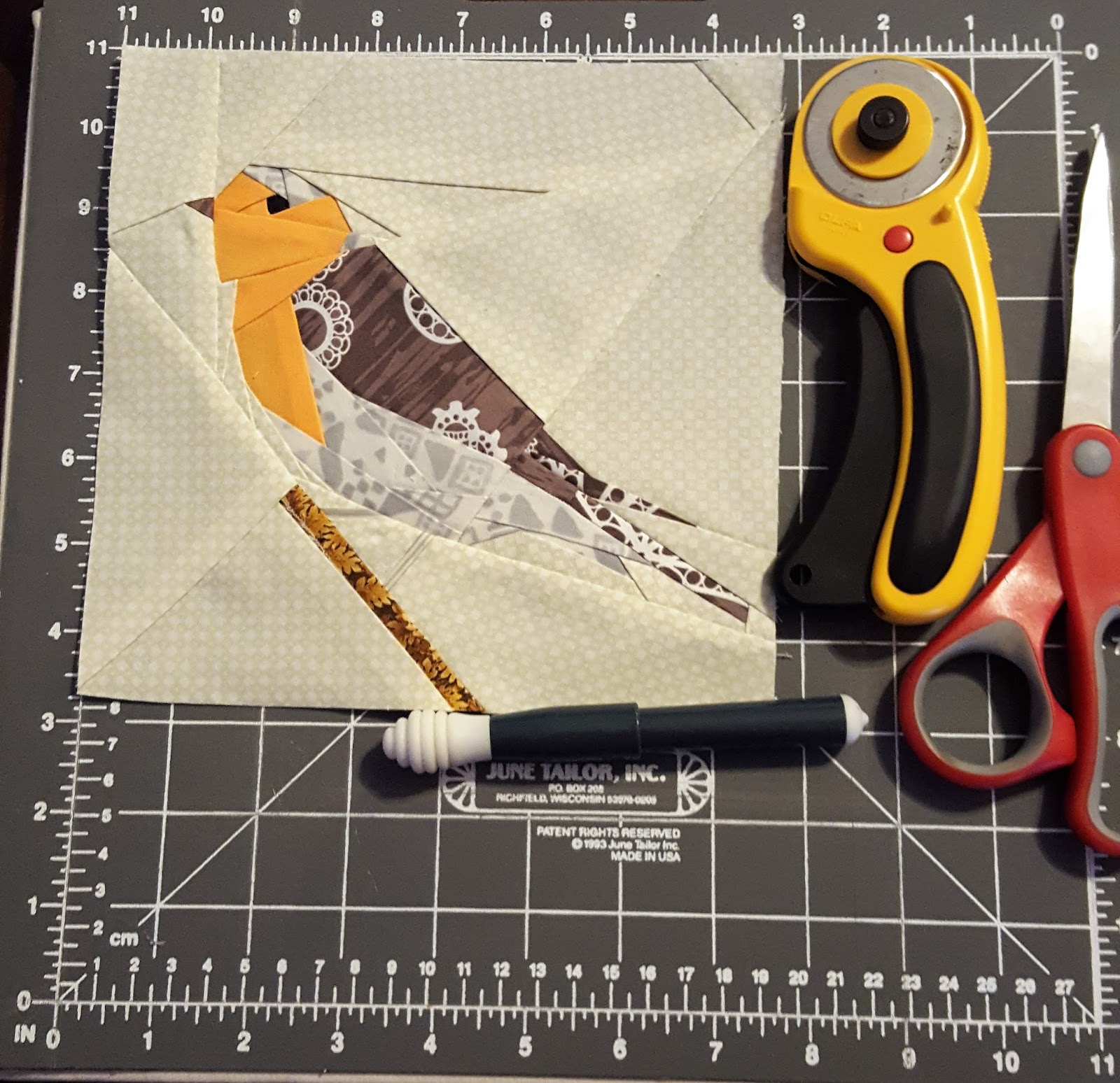I made another paper pieced block using a little more orange. I'm not in love with it, but it is a nice one to have on hand in case I need an additional block.