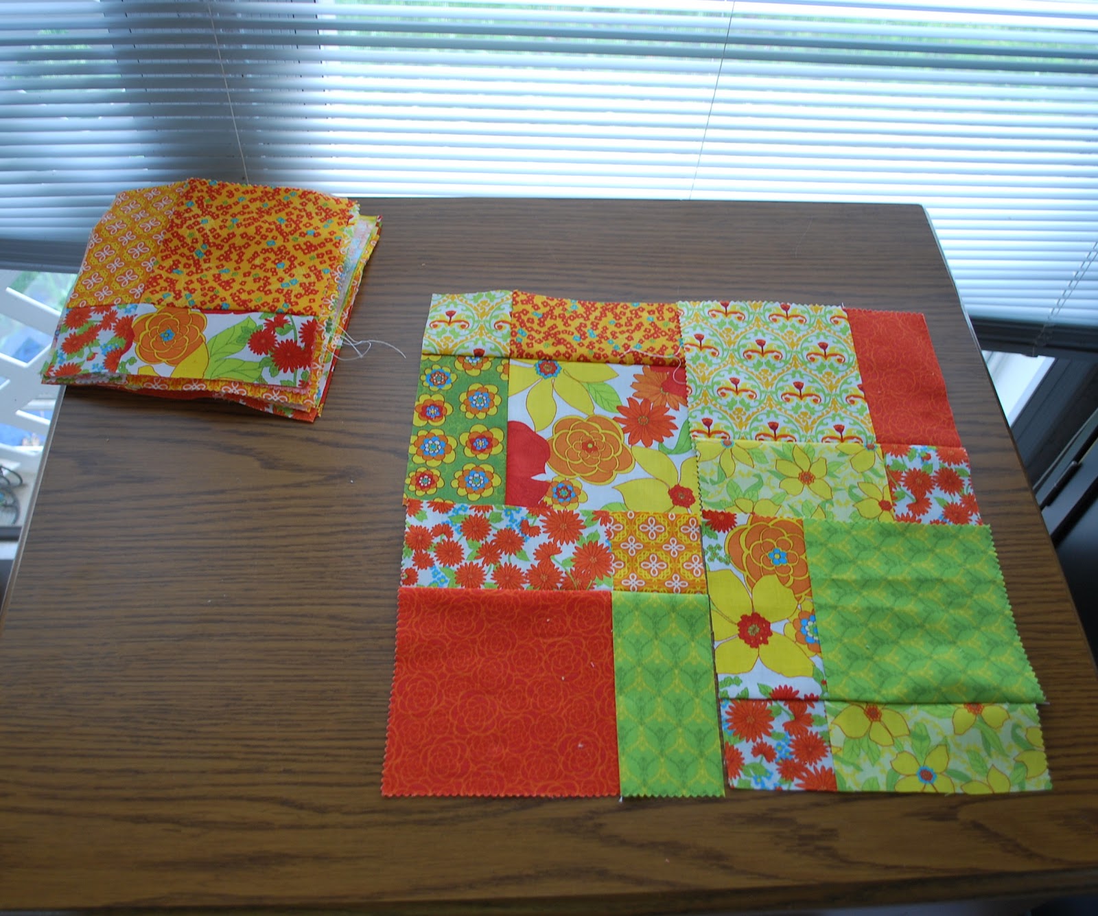 It all started with a few bright charms that I got on clearance at Joann Fabrics, and the idea to try a disappearing nine patch.
