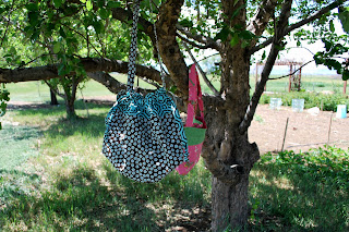 This huge, lined elephant print bag is headed to Baby C. I made it intentionally large with the hope that it'll temporarily hold the two hooded towels. After that? Well, it's a little large for carrying around - except as a pool/beach type bag - so I don't know that it will get a lot of use. If I were planning to keep it, I'd probably use it as a laundry bag for socks and such - or cut it down a bit to use as a farmer's market bag.