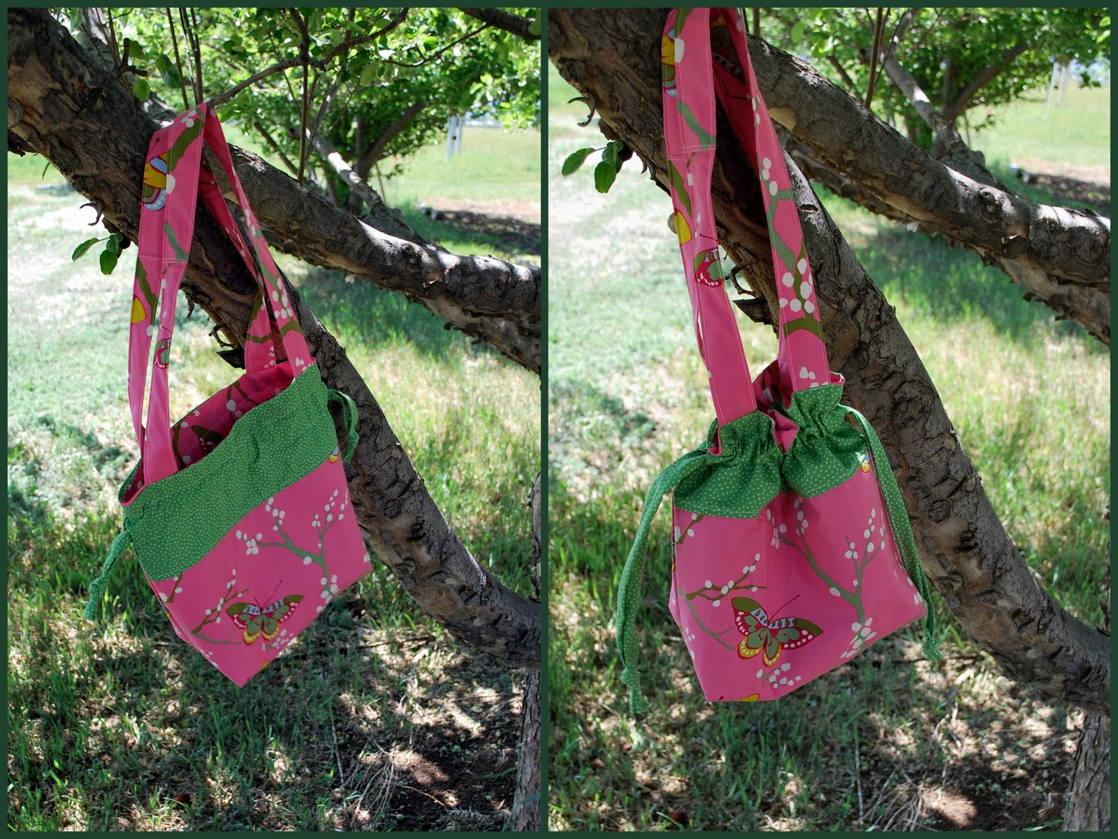 Immediately after finishing my fight with the brown/blue bag, I started on this pink/green. Did I need another bag? No. But I had the precut fabric to use, and I was determined to correct some of the issues I'd had in the blue/brown one.