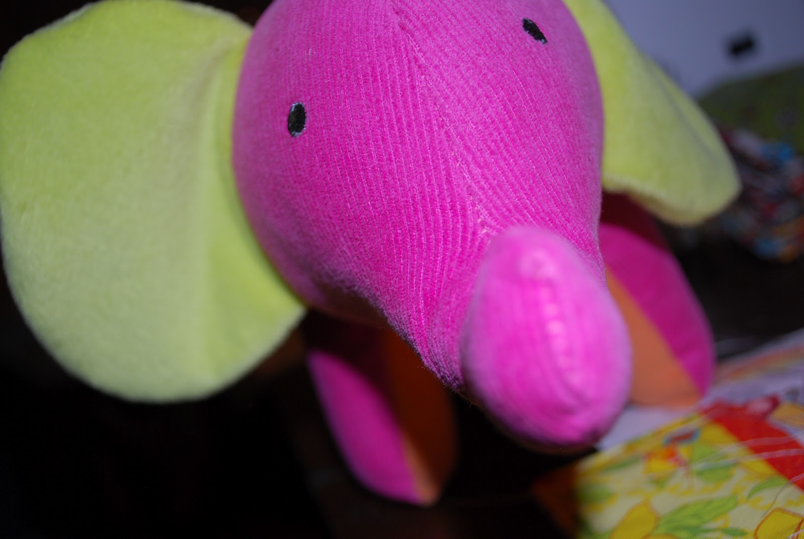 This little pink, green, and orange plush elephant has been keeping me company for the last few days.