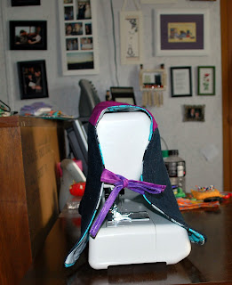Which means I really need to re-do the cover on my older machine. I'll spare you the picture, but it's more like a giant bag of pastel and cream fabric - though I did manage a hole for the handle so I can pick it up and move it easily. But I really ought to make another attempt at covering it - it looked slapdash before, and now it really looks sad in comparison.