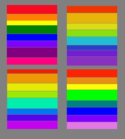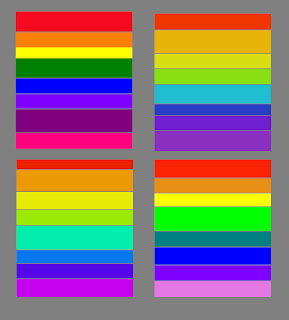 The color story has been clear since before I admitted to myself that I wanted to do this. Rainbow colors in dark gray/black fields. The good news? That can be applied to a number of patterns. The bad news? That can be applied to a number of patterns.