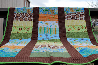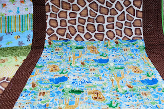 I adore each and every piece of fabric that got used - and I couldn't be happier with how they work together. It's quilted in organic lines with multi-colored brown/tan/cream thread on the body, and a multi-shaded green thread on top of the binding. Yes, I love multi-shade threads, and I have five spools of it in various shades.
