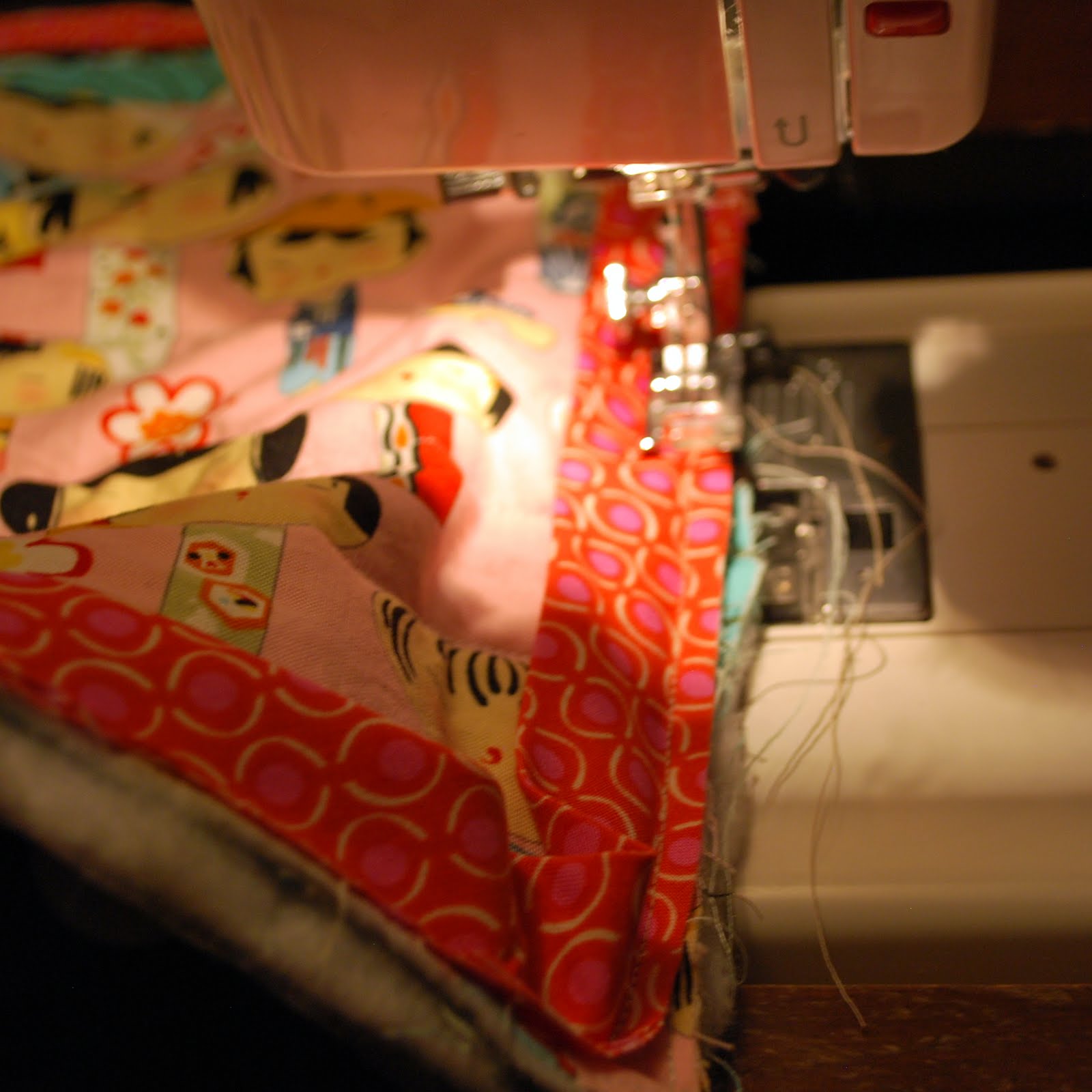 I wish I'd been a bit more cautious in picking what fabric went where, and I wish I'd stuck to my initial plan of avoiding the most text heavy pieces. They don't look bad, but they aren't quite as cute when cut up! But to get the size I wanted, I really needed to use each of the blocks that came in the layer cake - something I didn't learn until I was nearly finished. That made squeezing the text heaviest blocks in a bit more of a challenge, but I think it all worked out.