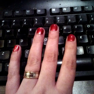 I've got to take them both off tomorrow when I return to the real world and hop right back into the kind of job that allows neither painted nails nor precious rings, but today I'm going to celebrate and enjoy having a day of my hands looking how I want instead of how work dictates!