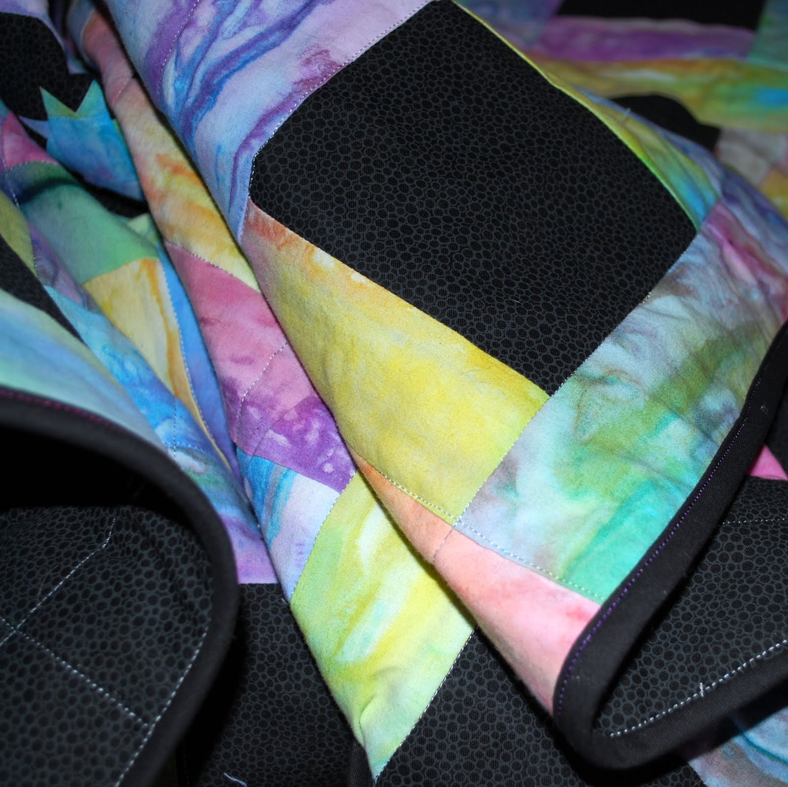 Some amazing batik rainbow tie-dye type fabric plus some black fabrics...