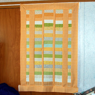 You can see that at least one of the stripes has no green at the very top - that strip got completely cut off when I pieced the top. Not the plan, but we're going to roll with it anyway!