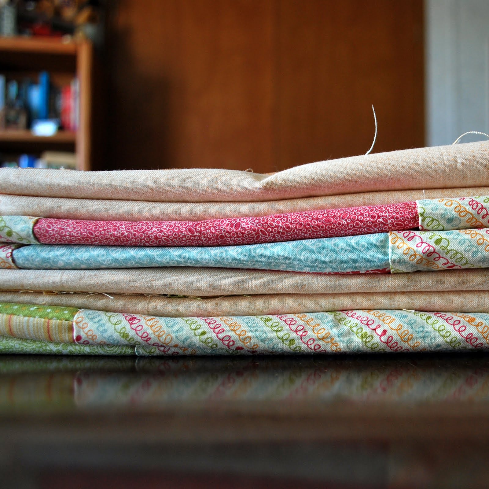 Each piece in the bottom has just a little of the last orange piece, but as much orange/yellow as there was in the top... I really should have cut one of the oranges (or yellows).