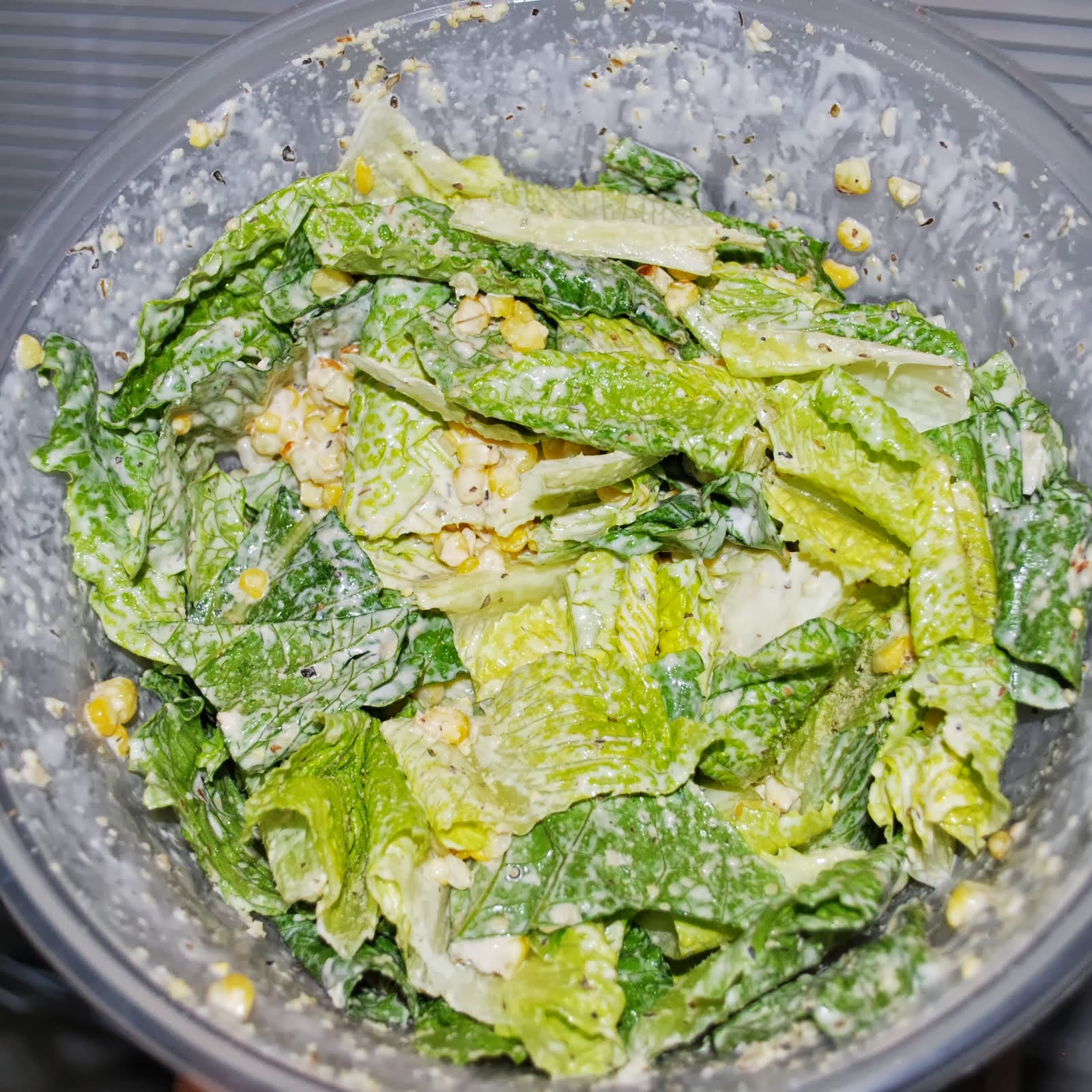 So the images of my roasted corn Caesar salad probably won't be sending anyone off to make salad, but it tasted amazing. I had no idea that corn would go so well with Caesar salad.