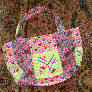 Nothing fancy - but lined (with one interior pocket - to coordinate with the three exterior 'windmill' pockets) and usable. And already taken to the library and shopping.