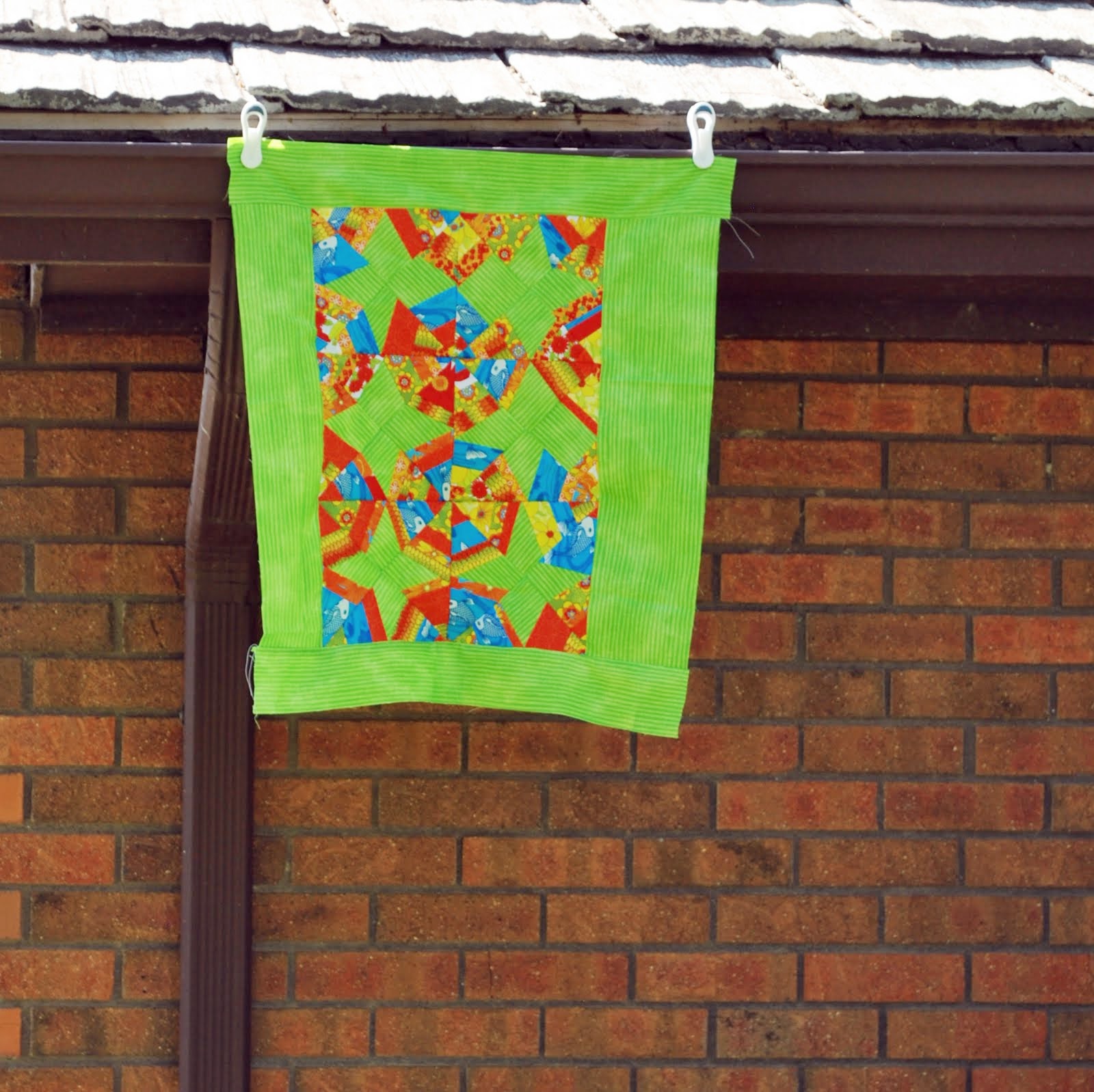 But I'm not sure it's quite perfect enough to use as a mini-quilt/wall hanging kind of thing. Some of the wonky got a little more wonky than I'd planned, and I'm not sure if I see 'intentionally wonky' when I look at it, or 'whoops!' But the colors and patterns are things I love. It would be a shame to hide it away somewhere...