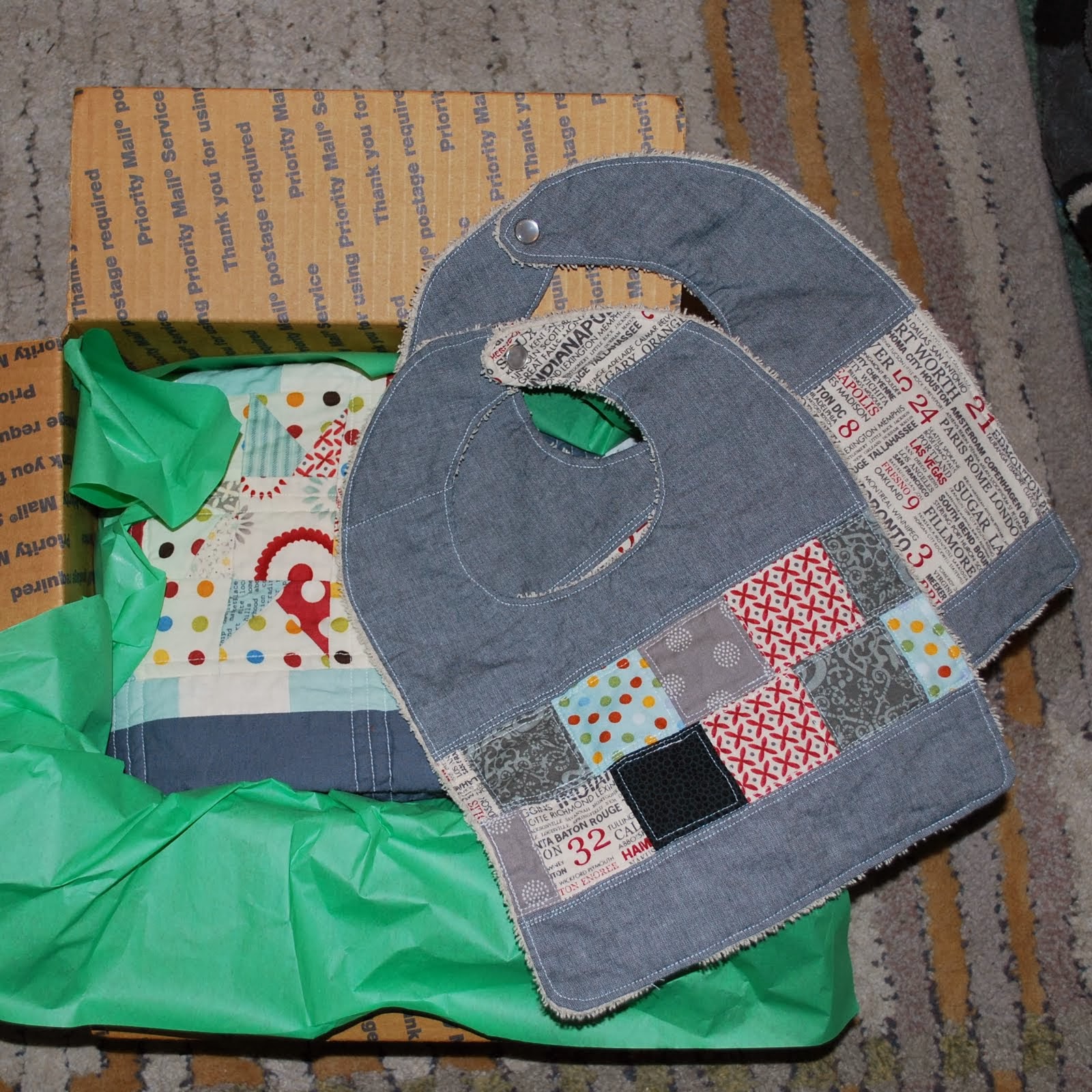 I am so thrilled to be sending my semi-sampler quilt off to them. Although I didn't sent out to make it for anyone, the moment I learned the news I began thinking that this was really meant to be shared with them. As I finished up, I just couldn't shake the idea that it really belonged with them instead. With the help of a mutual college friend - who happened to room with us each at one time or another- this little set (along my best hopes and wishes) is headed to the upcoming baby shower.