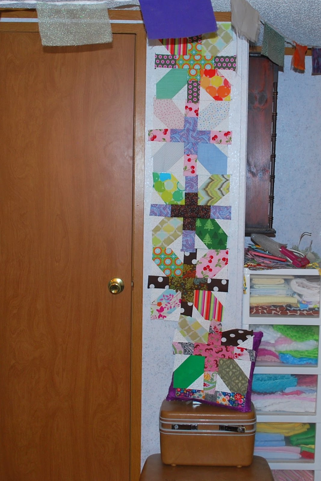 I have no time line and no plan, except a general idea to add more variety to the blocks, and I'm going to leave it that way. I think I may just pick along at this as I find time and scraps large enough. Then again, it may be that this kind of more creative, more 'whatever' project is all I'll be able to stand for the next week or two. Whatever.