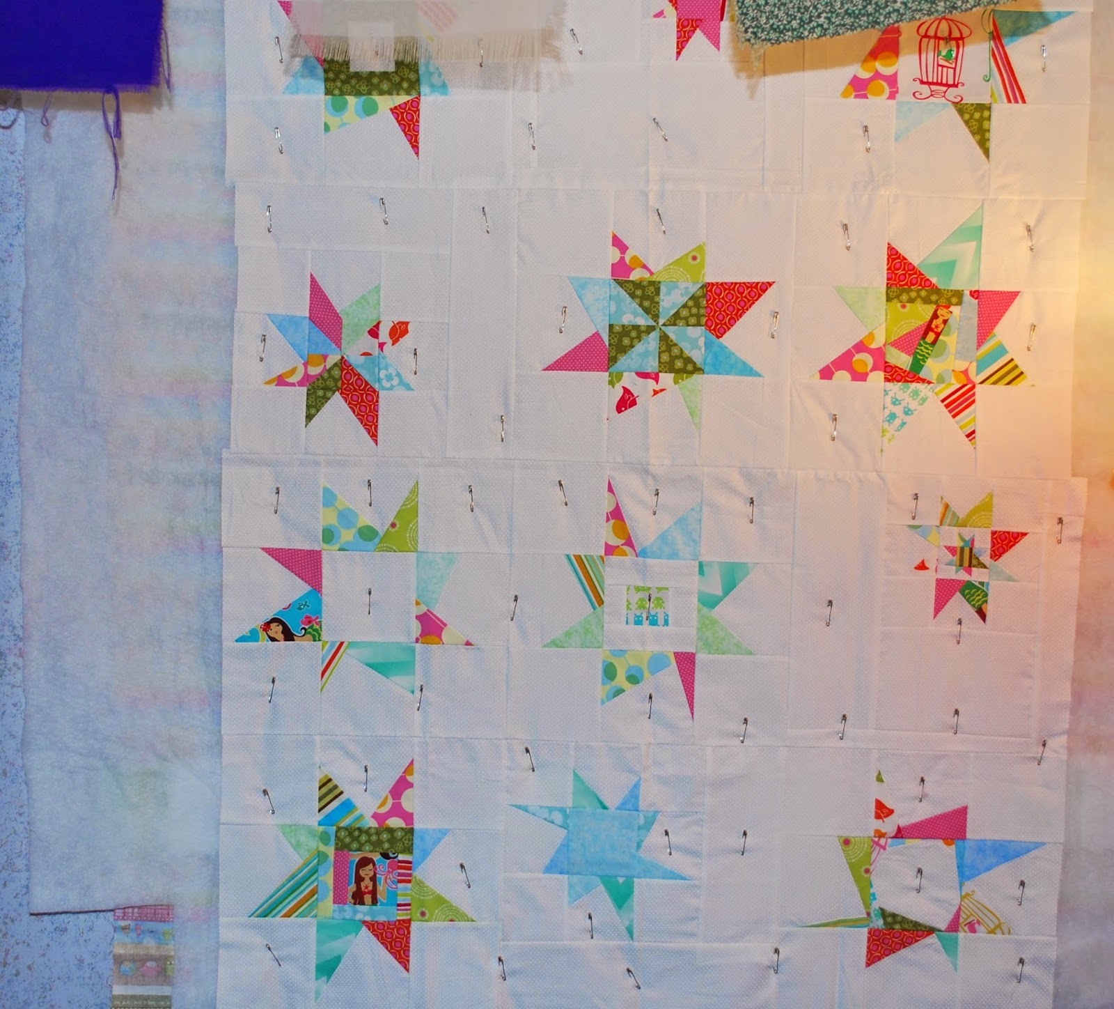 So, I'm constantly struggling with how to make basting work better. Crawling around on the floor is never fun, and usually gives me less than ideal results. I don't currently have a desk top I'm willing to put pins against. And I didn't have any kind of fancy batting. So, I tried something new I had seen brief mention of on Pinterest (where else, of course). (link goes directly to source, not through Pinterest)