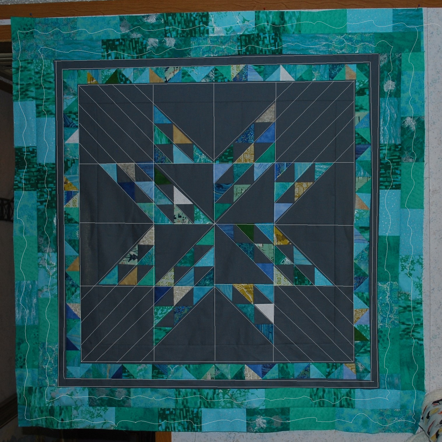 I didn't quite stick with my sketched up plan for quilting the Oceans quilt -- but I think I'm even happier with how it turned out than I would have been if I had stuck with my original plans.