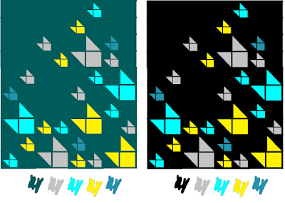 I tried a second batch. All worse (I think). The darker blue seemed miles darker when I tried it, but here it hardly looks different. The green is completely wrong, and the black? Is it just me or does this take on a Pac-Man ish color scheme? Not what I'm looking for -- although so far everyone I've shown the options to thinks that is a great thing.