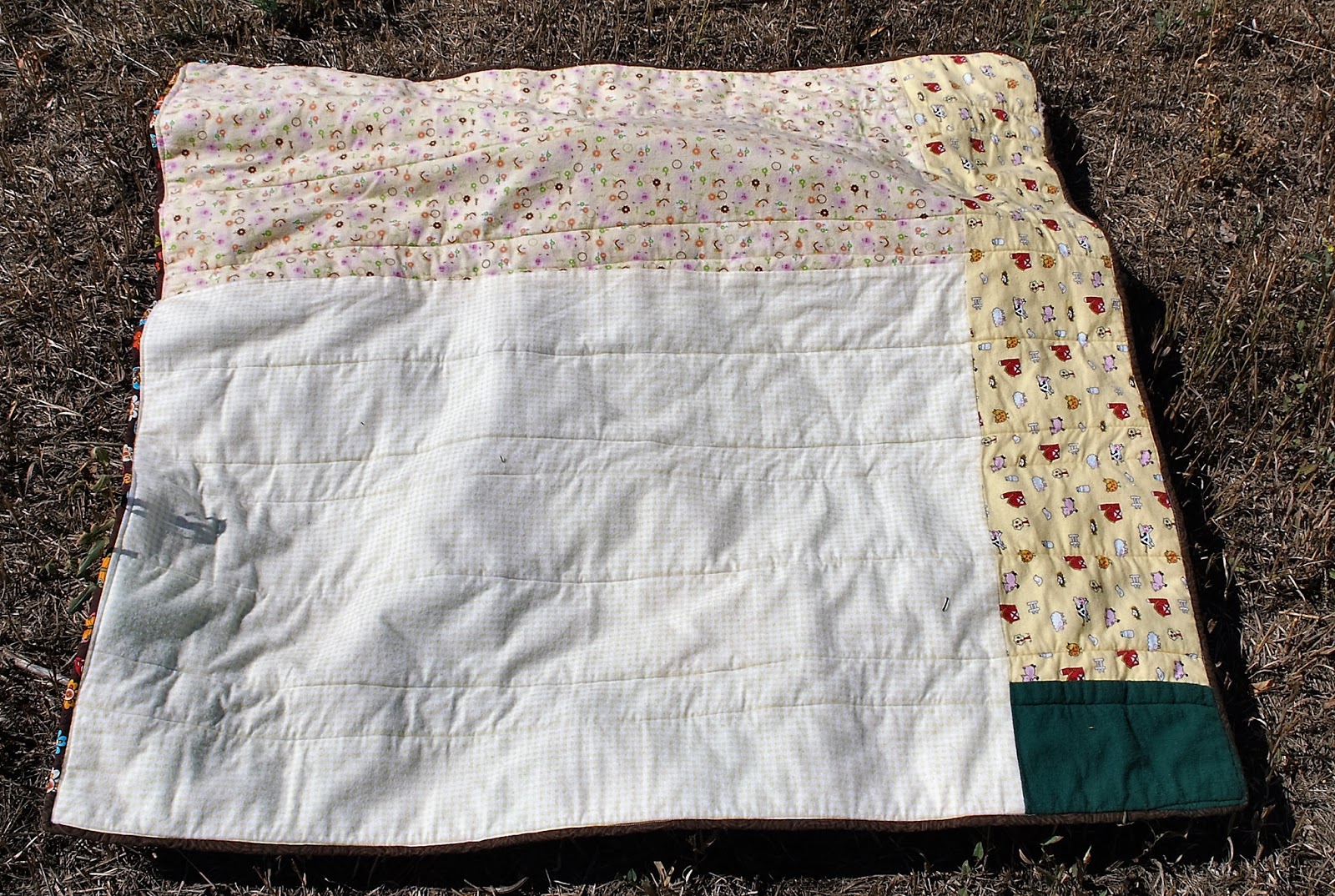 I was so close to finishing the whole back in yellow -- but I used up every scrap of yellow flannel I had and was just that short! That's okay. I think the dark green goes well with the top.
