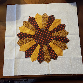 This month, and honestly, for the next couple months since we're lucky to meet 5 hours a month, my local quilting group is working on a Dresden Plate quilt.