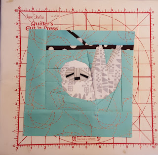 My toddler didn't exactly choose an animal -- but I offered him a choice of the patterns I'd collected and this sloth was the winner. I did have to shrink the pattern to about 75% scale to ensure the sloth would fit in the block. I'll probably have to border it out with excess background materials to get an 8 inch block, but that shouldn't be an issue. Working at 75% gives me some painfully tiny pieces, but I'm almost finished with tiny pieces... just the claws left that will be itty bitty... I might simplify that into 1 piece rather than 3 each hand like I want to do, simply for the size I'm working in...